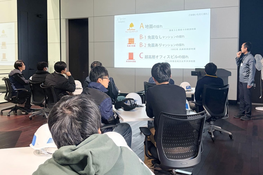 地震防災に関する講義のほか、風洞実験棟にて秒速30mの強風体験、先端地震防災研究棟にて長周期地震動や免震技術について体験しました。
