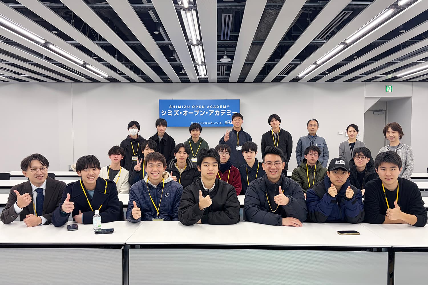 高校1~3年生の希望者18人は、期末試験後の自宅学習期間を活用し、清水建設株式会社の技術研究所(東京都江東区)を訪れました。