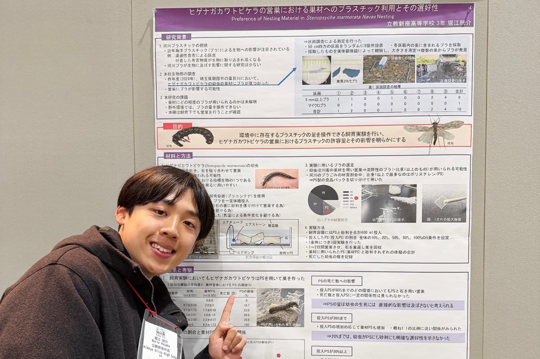 堀江さん「ヒゲナガカワトビケラの営巣における巣材へのプラスチック利用とその選好性」